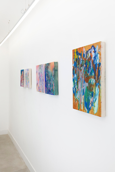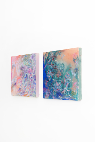 Across painting, Poetry of the Earth maps a visual terrain where inner consciousness meets the outer environment. Amram’s impetuous mark-making evokes moments of stillness, where organic forms—such as roots, erosion patterns, and natural phenomena—serve as structural references alongside fragmented codes and symbols that resist fixed meaning. Her work mirrors the quiet revelations of the spirit, interpreting form through repetition, disintegration, and transformation. Fan’s ethereal compositions blur the boundary between the physical and the metaphysical, weaving botanical and animalistic patterns with symbolic resonance. Her works offer a dreamlike space where nature becomes a portal to the unseen, merging the delicate with the divine. Hamblet grounds her practice in gesture and landscape, using mark-making as a trace of the body’s interaction with space. Her work becomes a commentary on the current state of nature and how it reflects human behaviour: squalls, flurries, moments of both haziness and clarity, in an abiding sense of brightness and heat. Through her dynamic compositions, nature is rendered not as a passive backdrop but as an active force mirroring our collective psyche. Harris draws inspiration from nature, emotion, and self-expression, which she explores through colour, shape, texture, and form in the pictorial space. Her richly layered paintings use colour and texture as emotional landscapes, where flora takes centre stage and the canvas becomes a site of introspection and spiritual resonance.