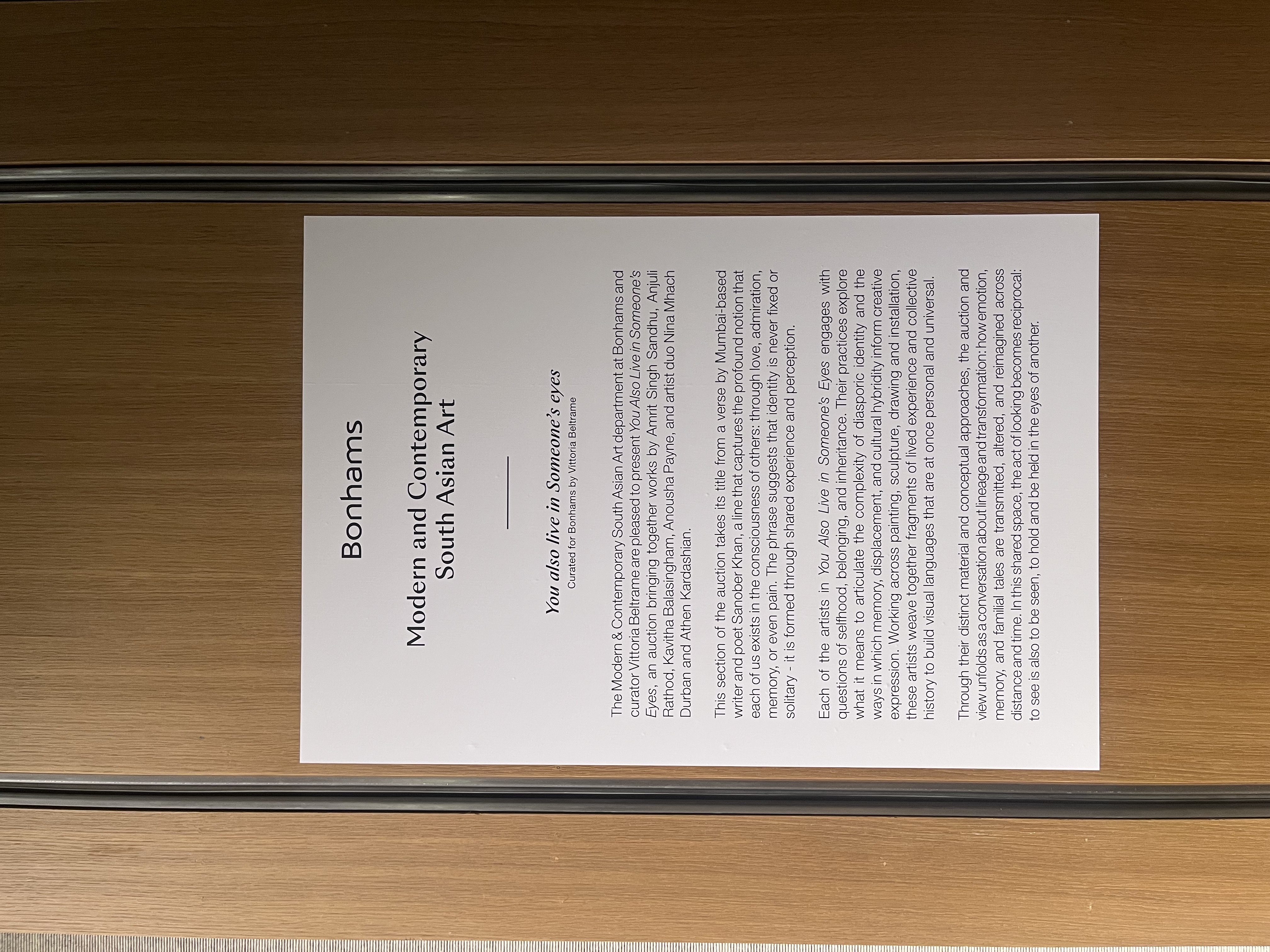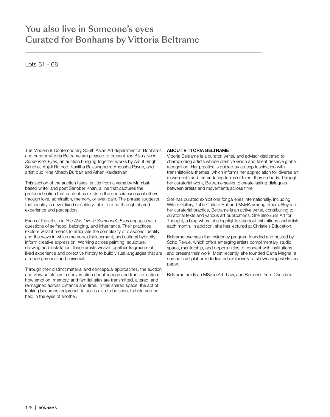 BONHAMS “You Also Live in Someone’s Eyes” - South Asian Modern & Contemporary Department